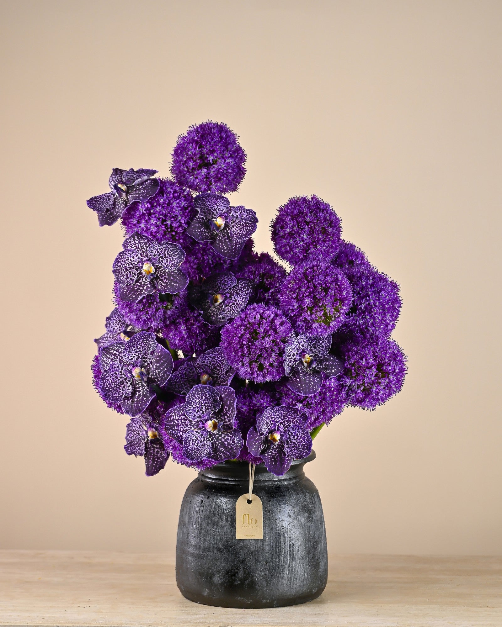 أضف لمسةً مميزةً إلى أي مساحة مع فانيسا، باقة زهور بنفسجية راقية، مصممة بخبرة لتُبرز ألوانًا غنيةً وقوامًا أنيقًا. تجمع هذه الباقة بين أزهار مختارة بعناية لخلق عرض متناغم يُضفي عمقًا ورقيًا على ديكورك. مثالية للمناسبات الرسمية واللقاءات الحميمة، تُضفي فانيسا لمسةً من الفخامة وتصميمًا زهوريًا متقنًا على بيئتك.