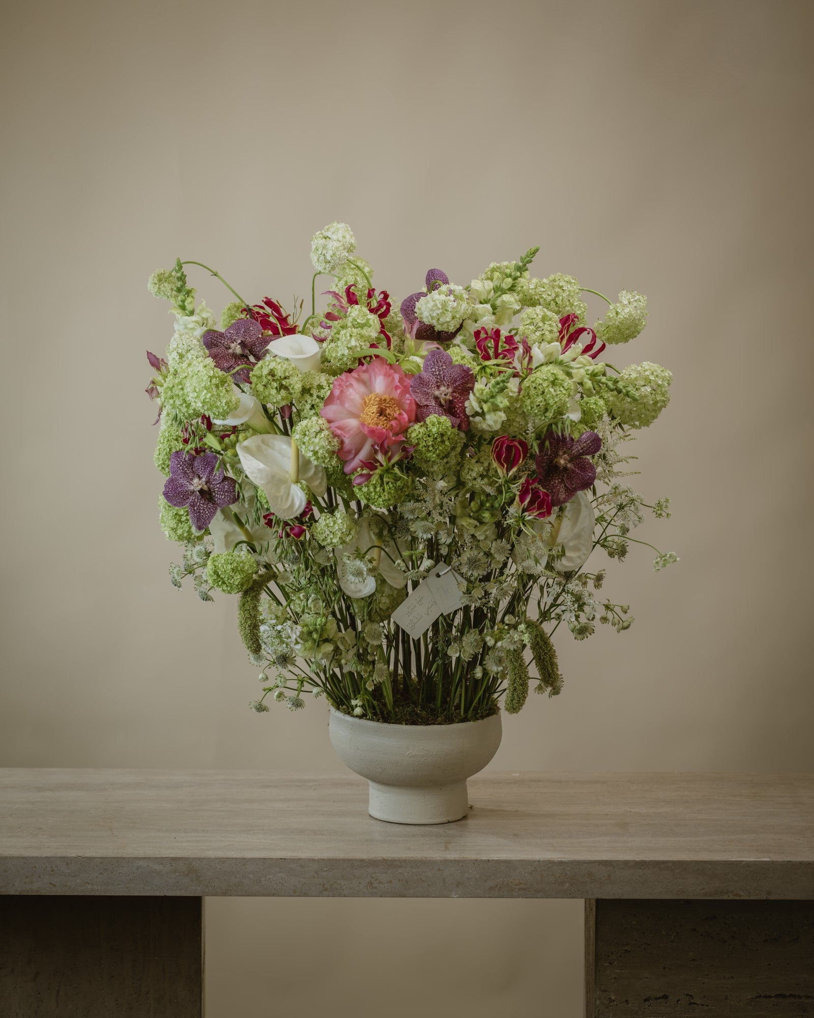 Expertly crafted with unique and rare blooms, Artemis is a stunning floral arrangement that adds charm and elegance to any space. Featuring a variety of delicate and distinctive flowers, it's sure to impress and delight anyone who lays eyes on it. Bring the beauty of nature into your home with Artemis.