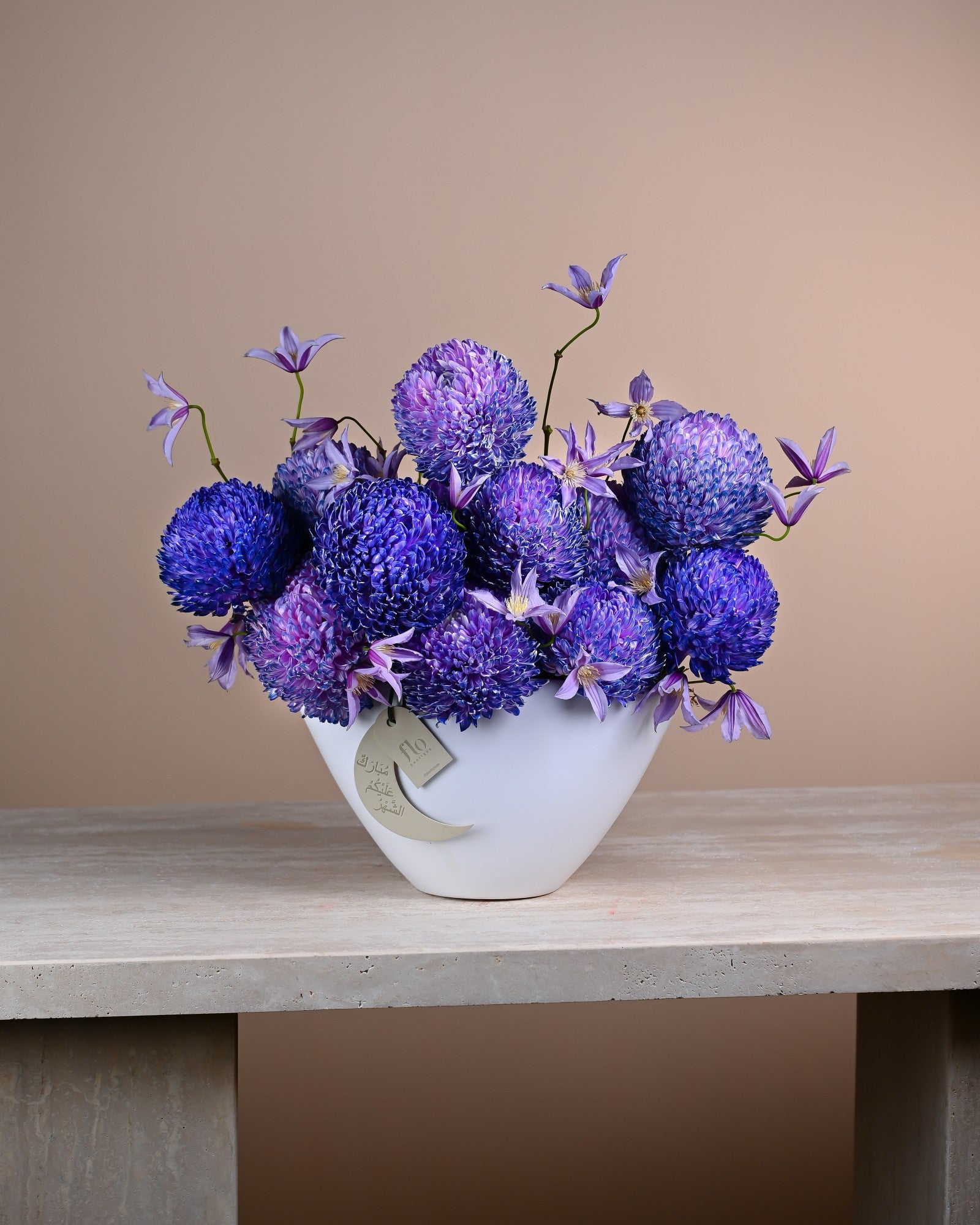 This unique, hand-crafted blue flower arrangement is perfect for adding a touch of elegance to your Ramadan celebrations. Its vibrant colors and delicate details will bring joy and beauty to any room. Made with care and attention to detail, this bleu arrangement is a must-have for your holiday decor.