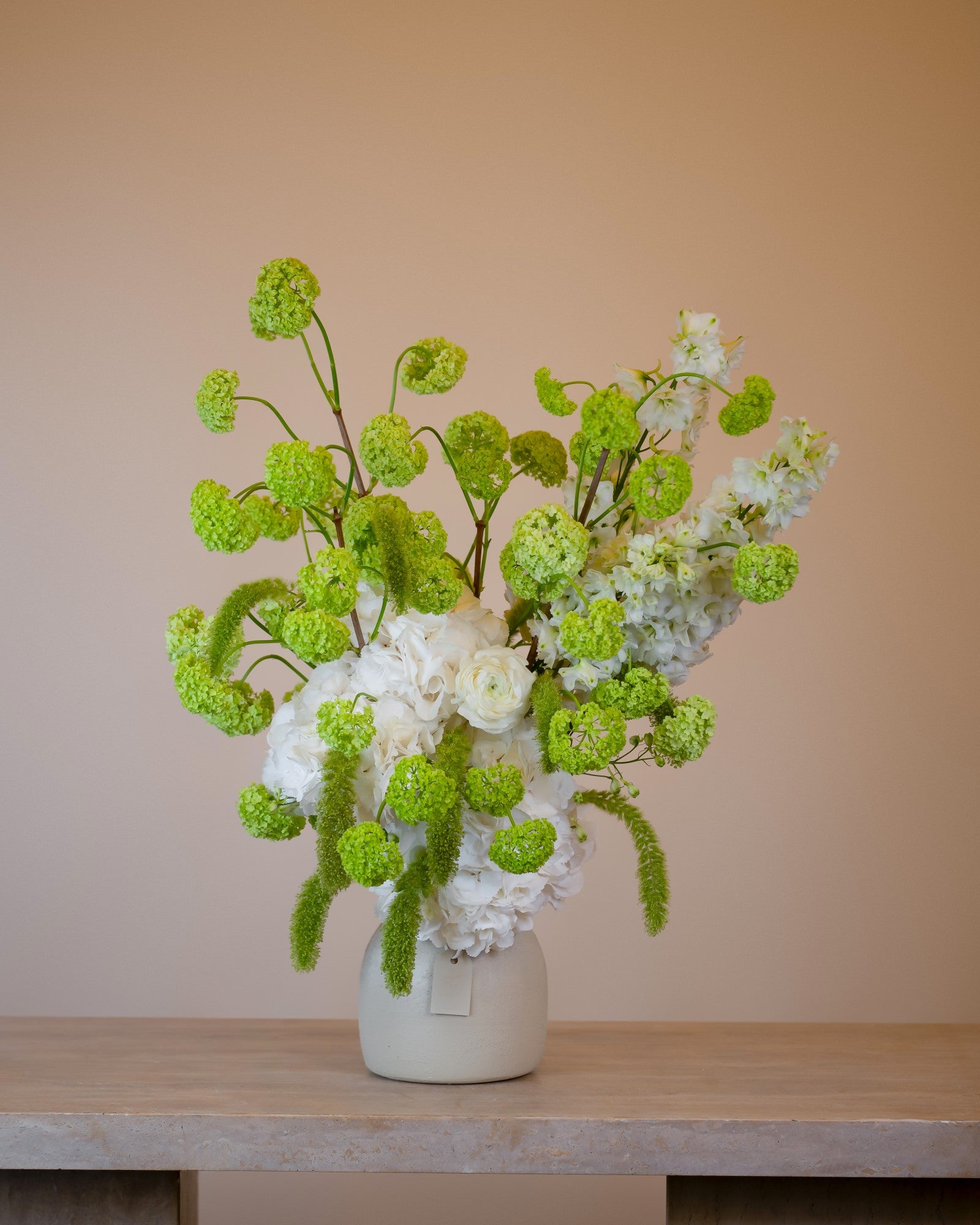 Introducing Brylee - the perfect flower arrangement for brightening up any space. Made with beautiful white flowers, this arrangement adds a touch of elegance to any room. The white blooms symbolize purity and innocence, making it an ideal gift for any occasion. Elevate your home or office with the Brylee arrangement.