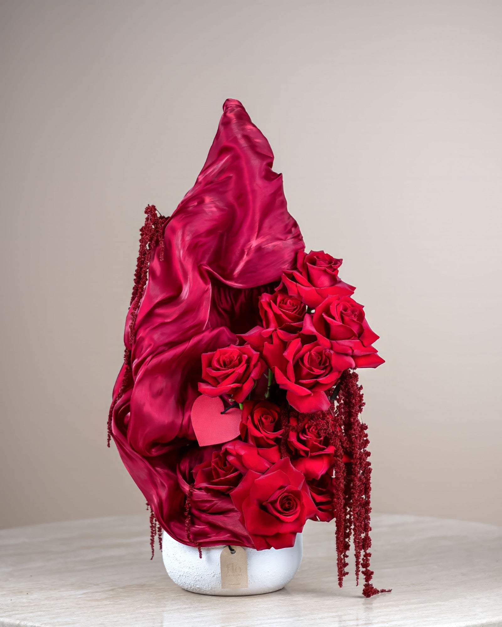 Fida showcases a sophisticated arrangement of vibrant red blooms, expertly composed to create a striking focal point for any space. Each stem is carefully selected and positioned to ensure optimal visual impact and longevity. This arrangement combines classic elegance with contemporary design, making it ideal for celebrations, corporate settings, or as a refined gift. The rich red tones convey passion and appreciation while maintaining a polished, professional aesthetic. Perfect for those who appreciate floral artistry and quality craftsmanship.