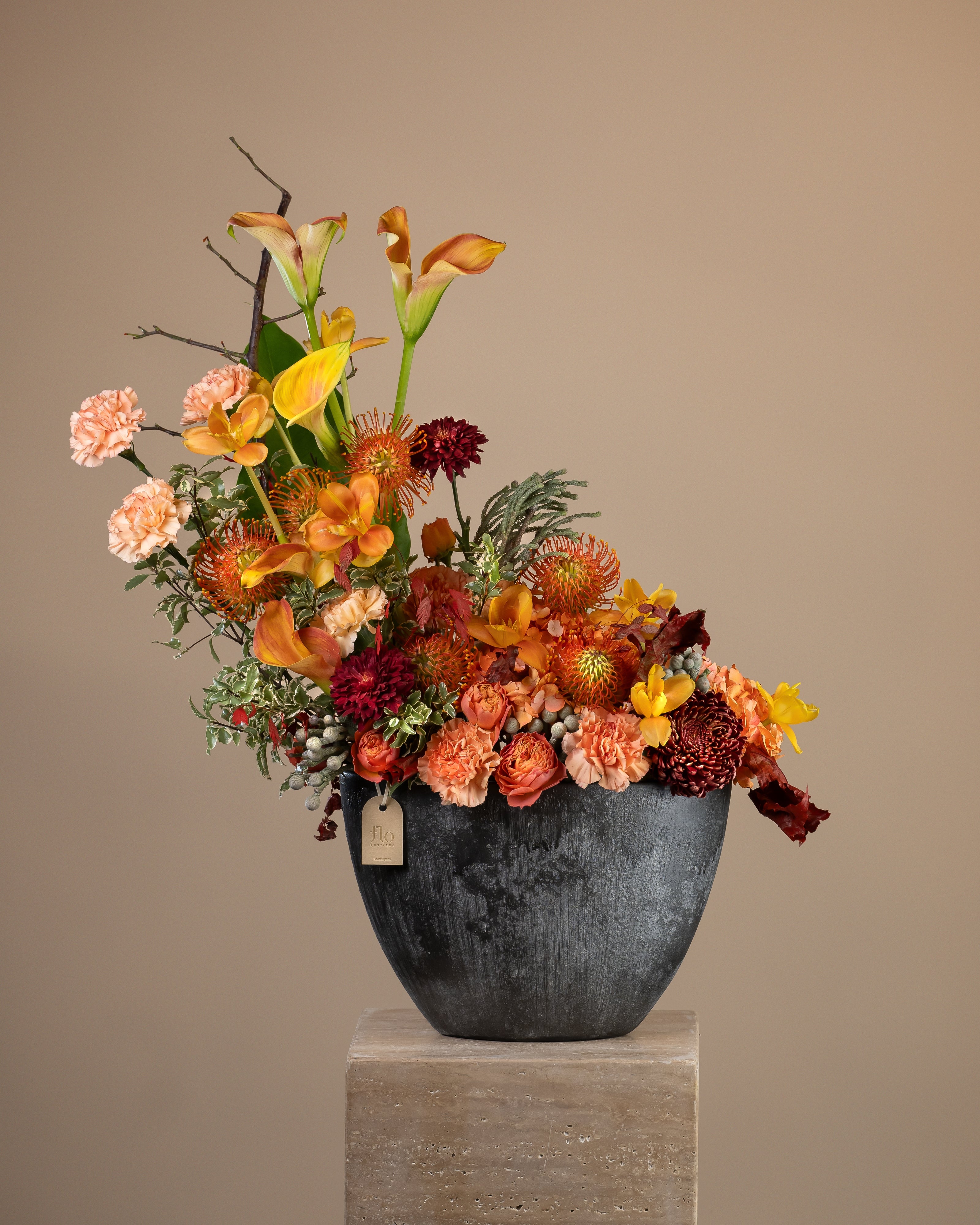 Create a stunning display with Freyja, a beautifully crafted flower arrangement. Perfect for any occasion, this arrangement will add a touch of elegance to your home or event. Handcrafted with precision and expertise, Freyja boasts a unique and captivating design. Elevate your space with the natural beauty of Freyja.