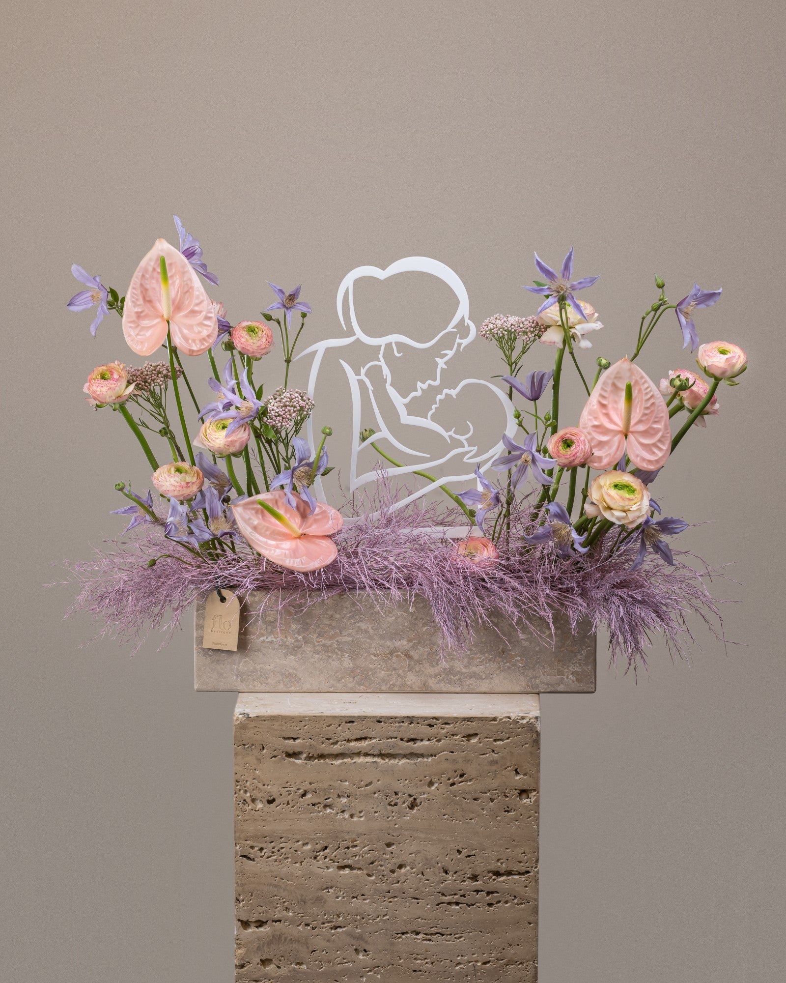 Surprise mom with Izabella, a one-of-a-kind natural flower arrangement on a marble base. Handmade with love, this unique gift celebrates Mother's Day in a beautiful and meaningful way.