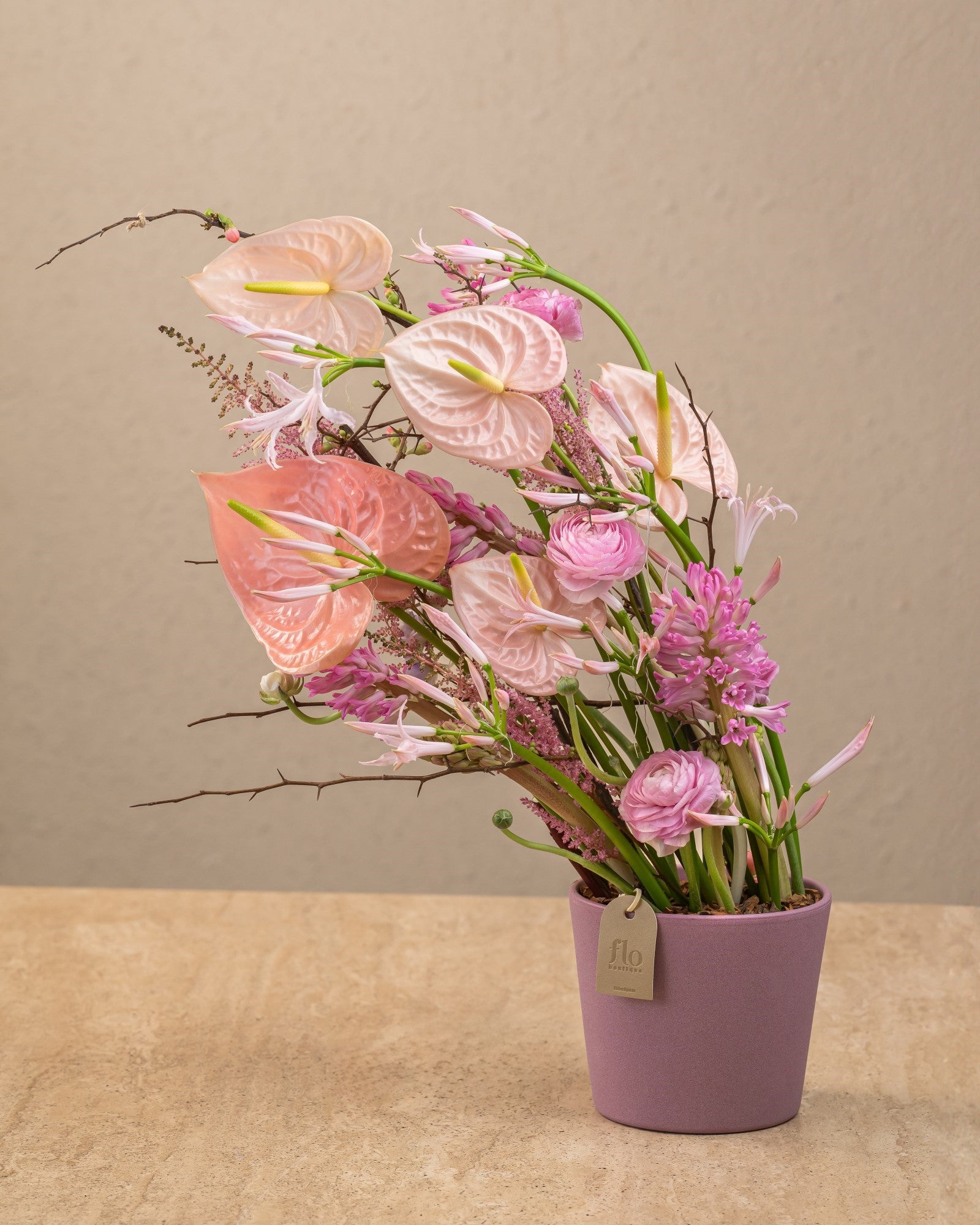 Meet Joanna - the perfect pop of pink for any space! This quirky flower arrangement is sure to add a playful touch to your home or office. With its vibrant blooms and eye-catching colors, Joanna will bring a smile to your face every time you see it. (Warning: may cause spontaneous bouts of joy!)