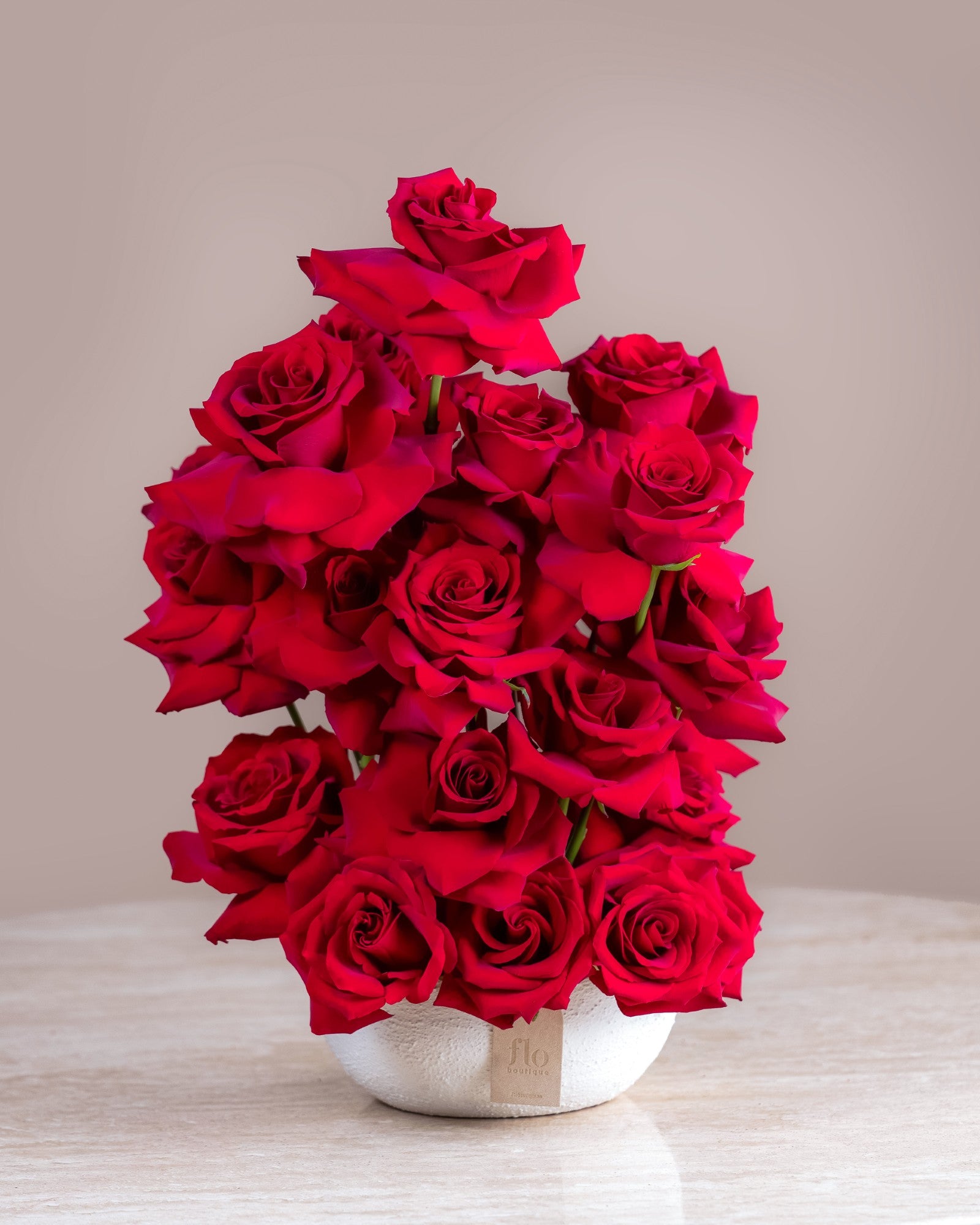 # Jody Elevate your space with this striking red flower arrangement, meticulously curated to deliver sophisticated elegance. Each bloom is hand-selected and expertly arranged to create a dynamic composition that commands attention while maintaining refined balance. Perfect for marking special occasions or adding a bold statement to any interior, this arrangement showcases the natural beauty and longevity of premium florals. The vibrant red tones convey passion and luxury, making it an ideal choice for those who appreciate floral artistry at its finest.