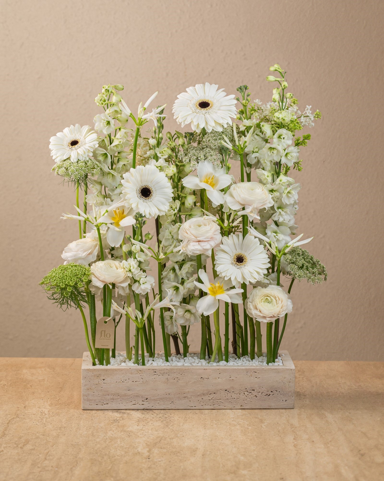 Get ready for a breath of fresh air with Lila, our signature bouquet at Flo Boutique. Keep your space always fresh with our unique arrangements featuring only the brightest white roses. Because who wants something basic and boring? Not you. (Trust us, your floral game will be on point.)