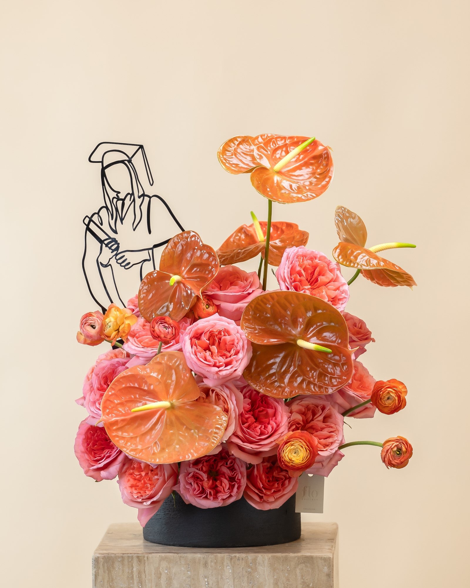 Experience the beauty of nature with Luna - a stunning flower arrangement perfect for graduation ceremonies. Its unique and elegant colors will add a touch of sophistication to any celebration. Made with all natural flowers, Luna is a must-have for any graduate.
