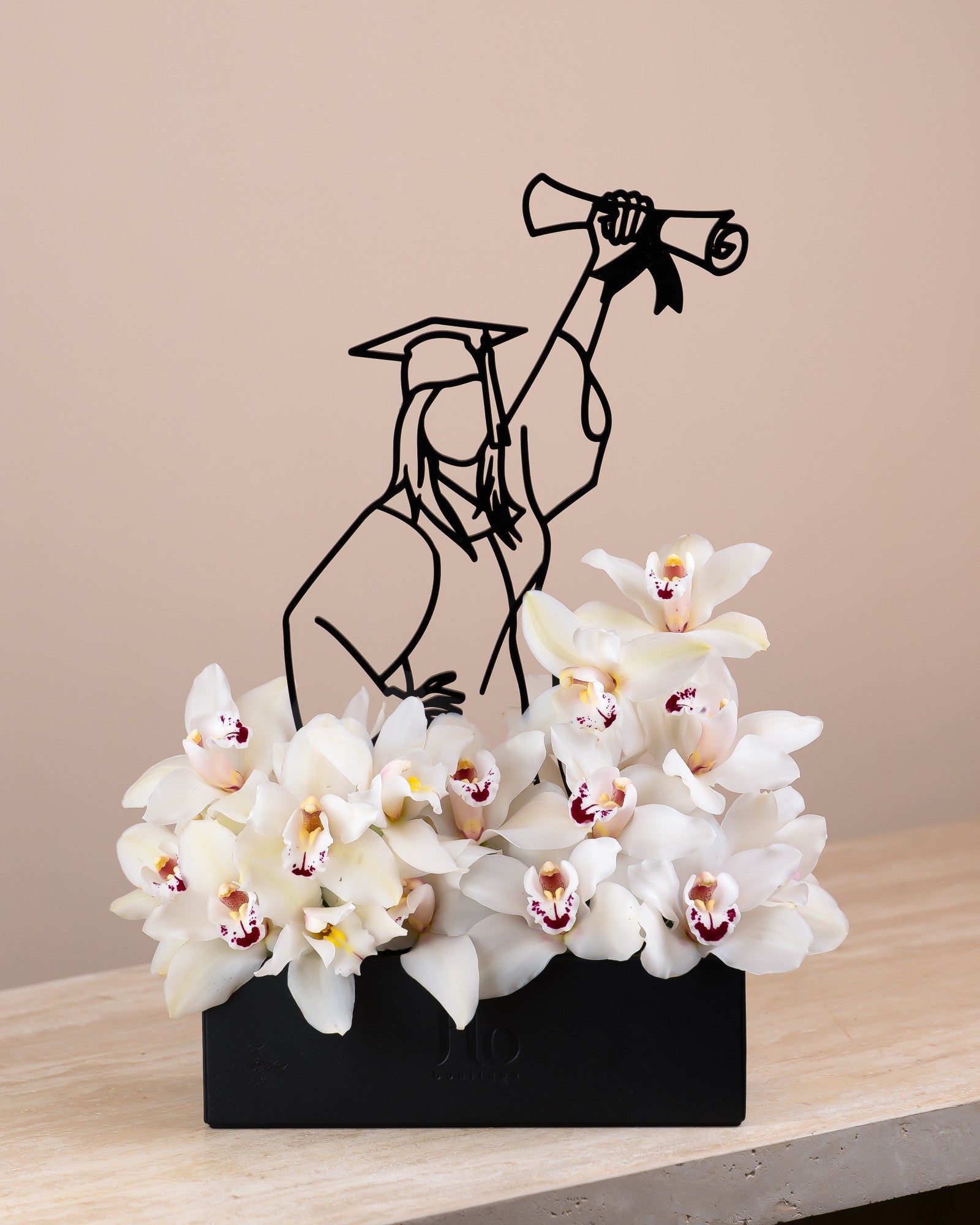 The Marina flower arrangement is the perfect way to celebrate your loved one's graduation. Expertly designed with beautiful blooms, this arrangement is sure to bring joy and congratulations to the recipient. Make their special day even more memorable with Marina.