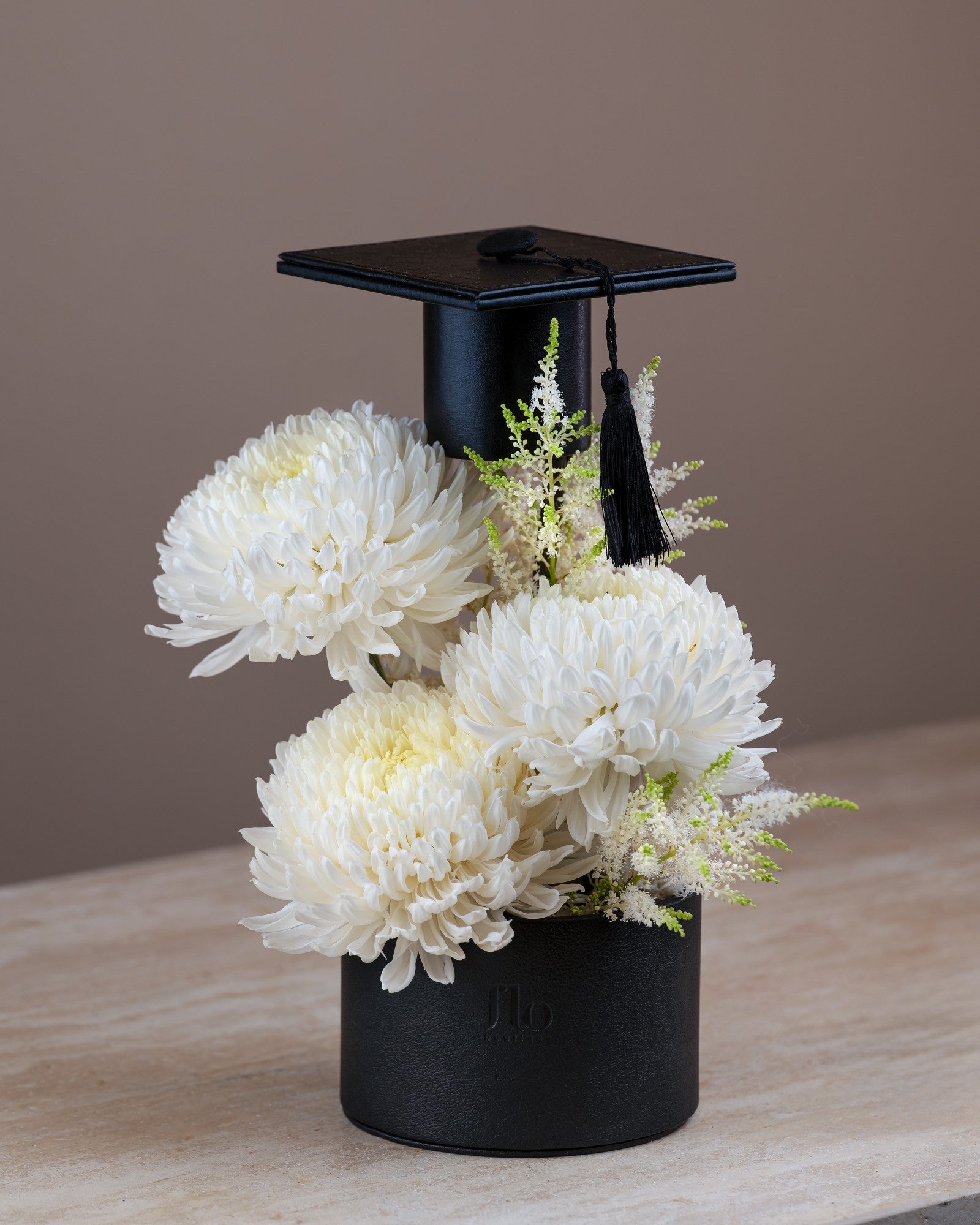 Enhance any graduation ceremony with the beautiful and compact Nellie flower arrangement. Featuring small blooms in a variety of colors, this arrangement adds a touch of elegance and celebration to any event. Perfect for expressing congratulations and well-wishes.