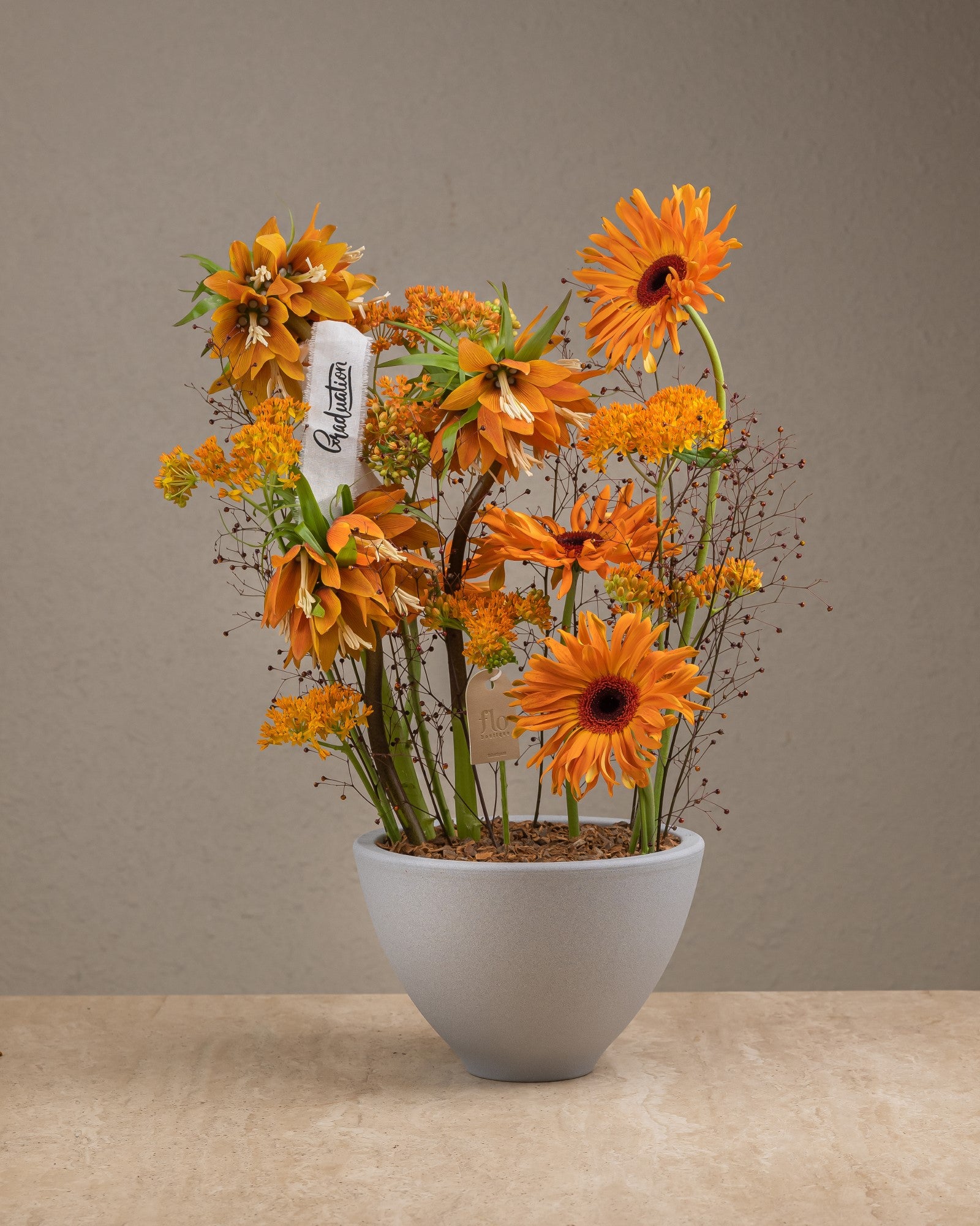 Make a bold statement with the Patricia orange flower arrangement. Crafted with bright, show-stopping orange blooms, this luxury arrangement is the perfect way to make any space feel vibrant and sophisticated. Expertly arranged with delicate foliage to complete the look, Patricia will bring a touch of opulence to any occasion.