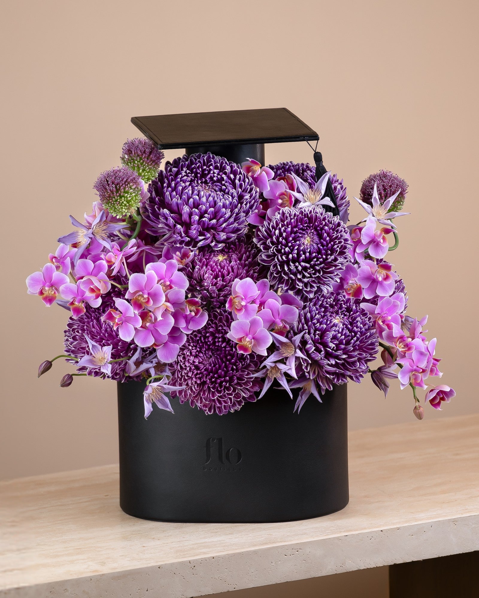 Enhance any graduation ceremony with Persephone, the perfect flower arrangement. Each carefully chosen flower symbolizes the growth and success achieved through years of hard work. Bring beauty and joy to a special event with Persephone.