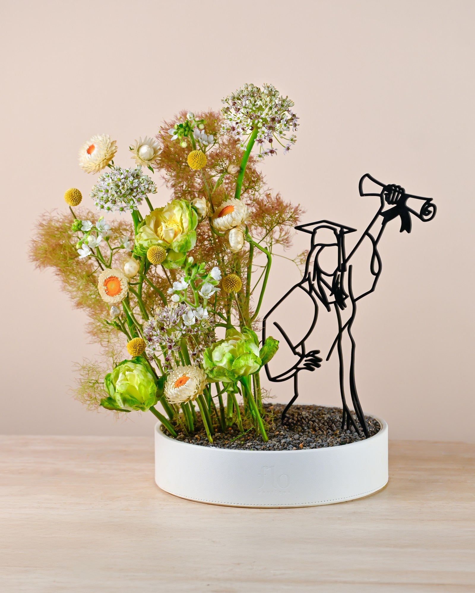 Celebrate academic achievements with our expertly crafted graduation flower arrangement. Designed to convey congratulations and pride, this elegant bouquet combines vibrant blooms symbolizing success and new beginnings. Perfect for gifting to graduates, it adds a thoughtful and beautiful touch to any celebration.